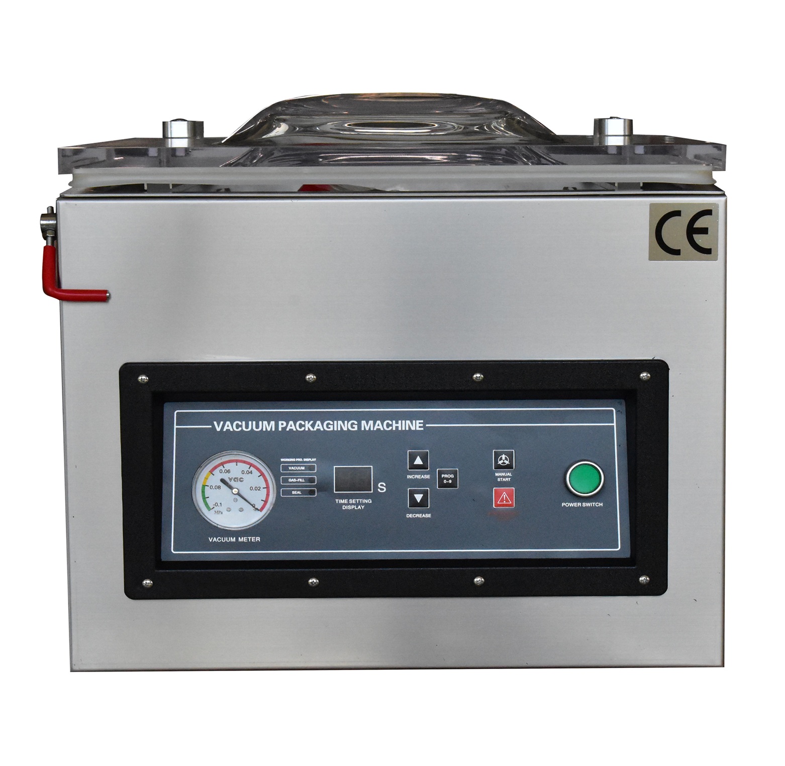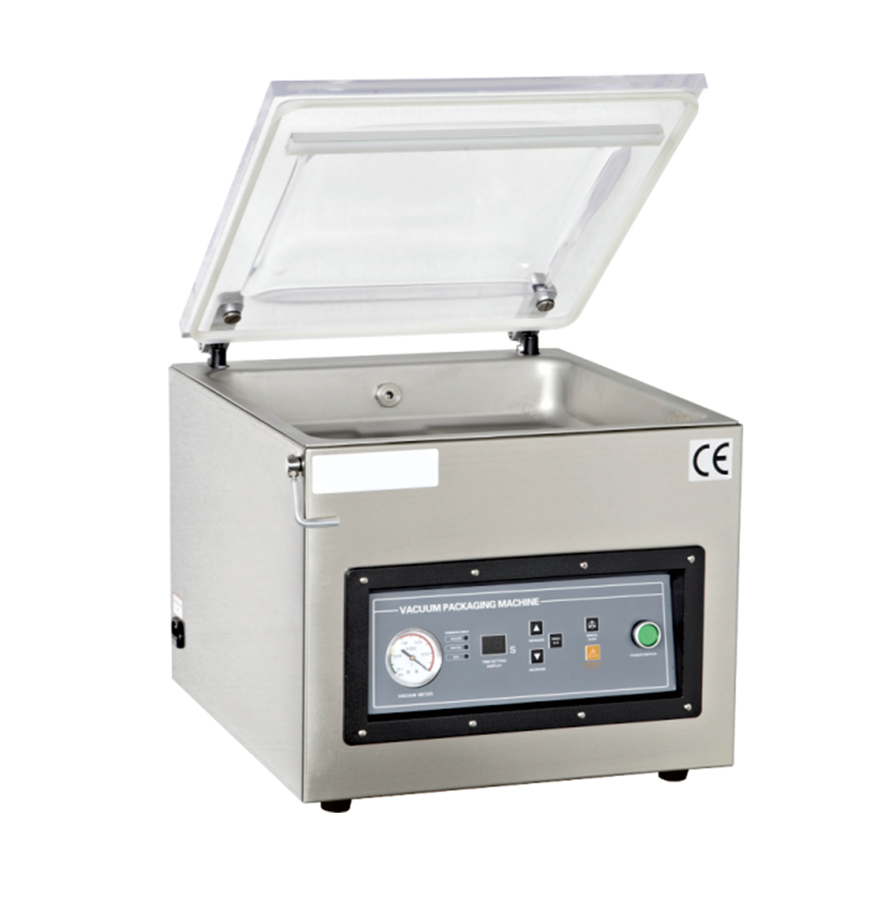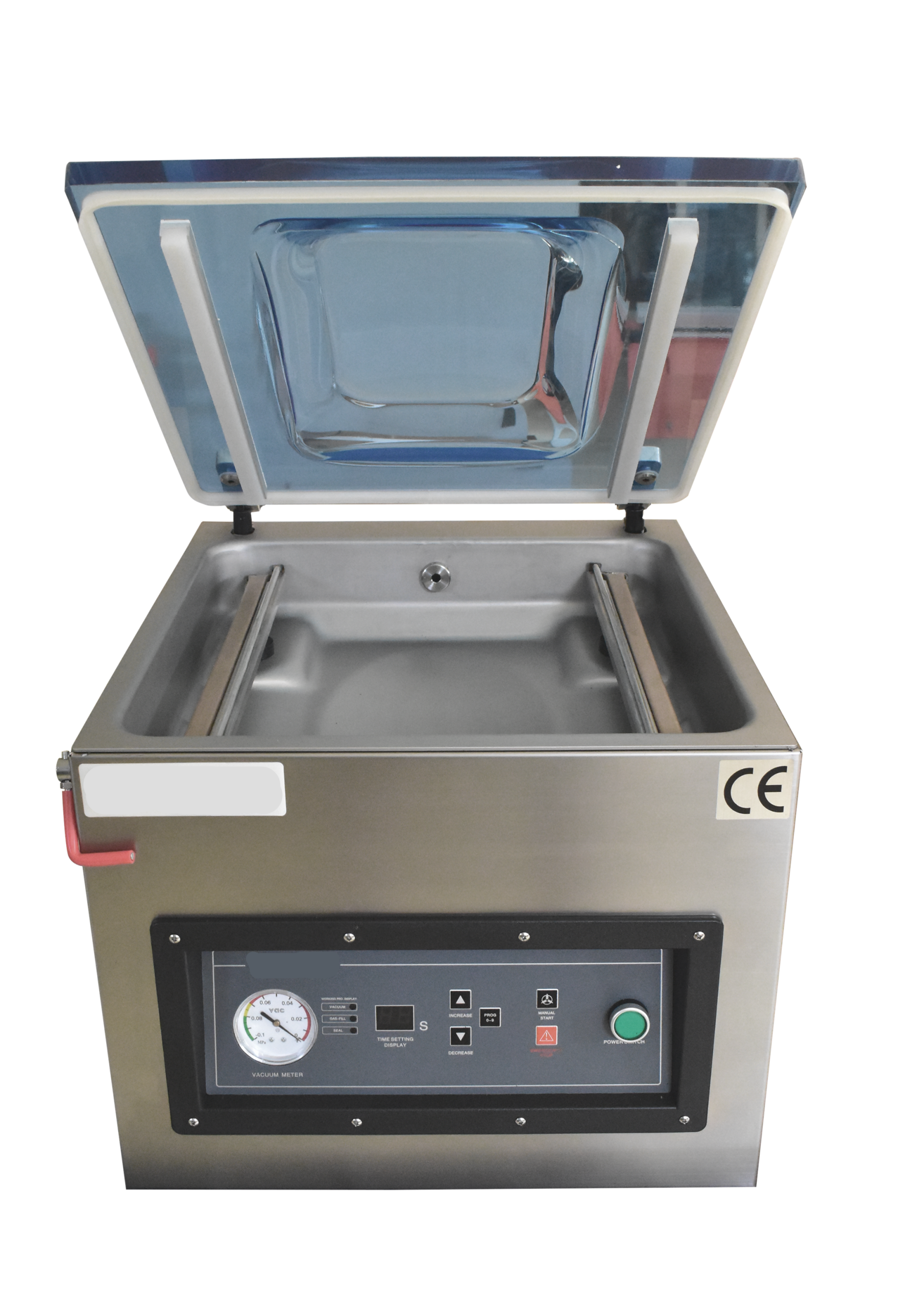 Equipped with a programmable control panel, the DOZE400TB supports up to 10 custom programs for vacuum time, sealing, cooling, and gas flush settings, making it adaptable to multiple packaging requirements. Its gas flush capability allows nitrogen or protective gas filling, essential for preserving oxygen-sensitive products. The machine is compatible with a variety of packaging materials, including barrier films, laminated aluminum-foil bags, and soft packing films, ensuring versatility across diverse packaging applications. Designed with operator safety in mind, it incorporates an emergency stop button and a grounded electrical system to ensure safe operation. The DOZE400TB commercial vacuum sealer thus provides a reliable and cost-effective packaging option that maximizes shelf-life extension and reduces waste, suitable for continuous operation in demanding industrial environments.