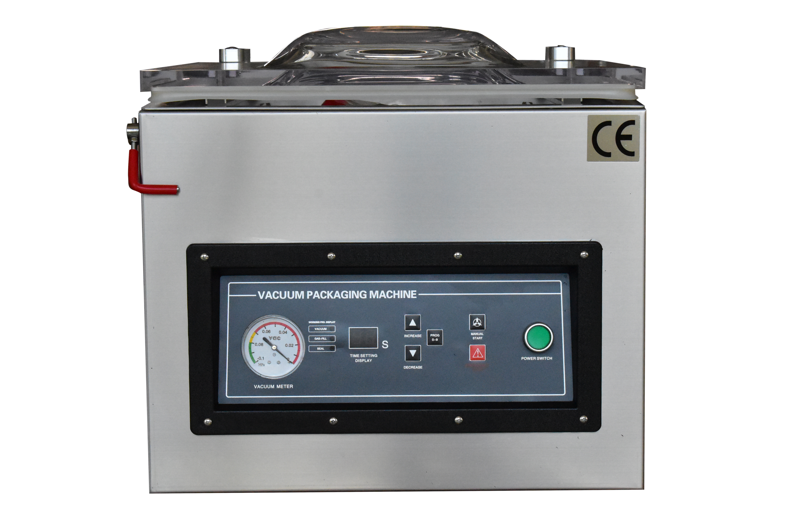 The machine supports up to 10 programmable control settings for customized vacuum and sealing cycles.
